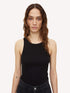 Mooie basic top van By Malene Birger. De top is van een fijne bio katoen gemaakt en rekt mee. De licht geribde stof en hoge ronde halsijn geven de top een hoogwaardige look. Ook in het wit verkrijgbaar