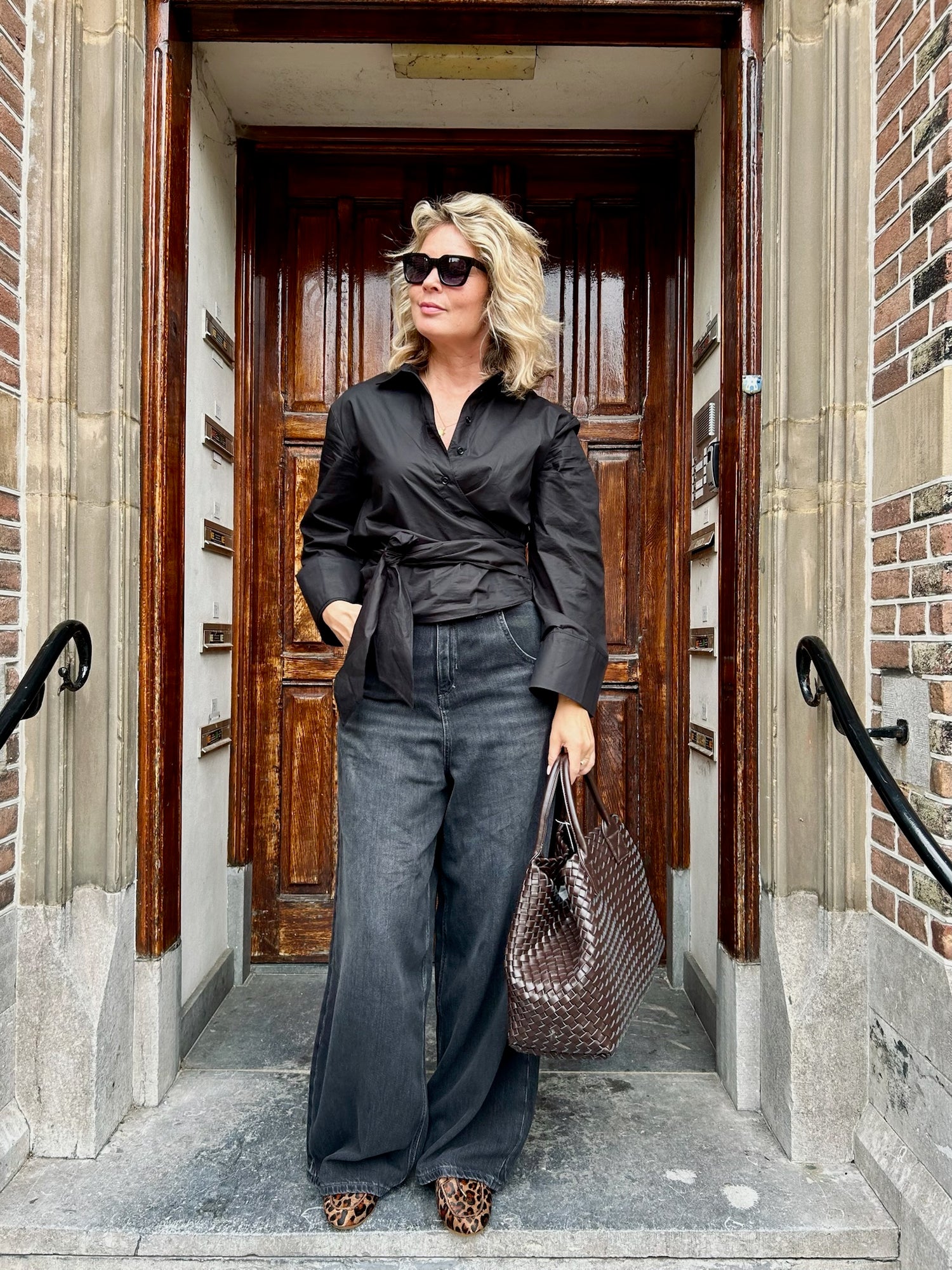 Black wrapblouse look