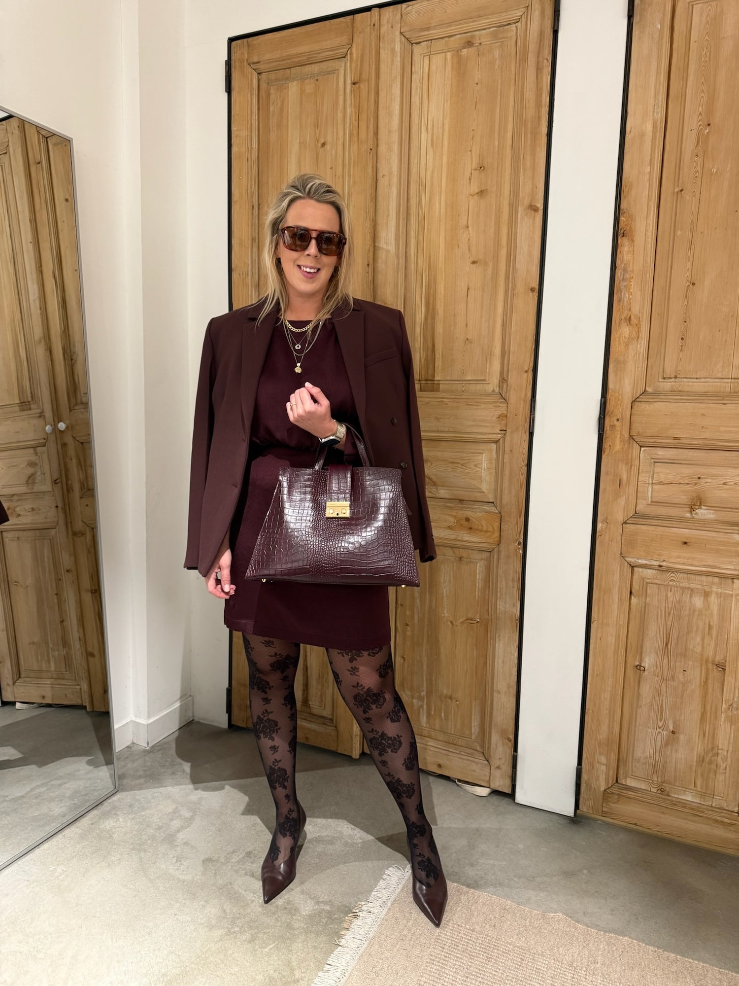 Leren tas Kroko - Burgundy
