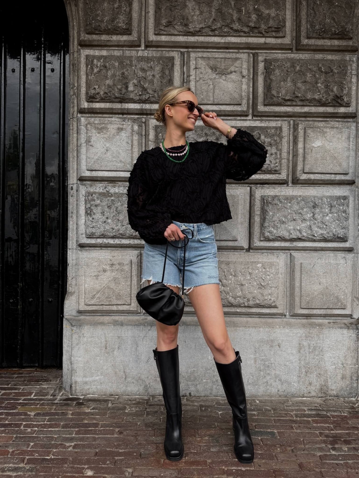 Zwart en jeans festival look