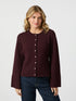 Elegant fijngebreid vestje van Neo Noir, met brede manchetten en subtiele parelknoopjes.