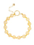Prachtige armband met gele gemstones. De diameter van een gemstone is 1cm. Met mooie gouden accenten, een rond slot en een verlengkettinkje van rechthoek schakels.