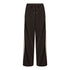 Geef je outfit een sportieve en trendy upgrade met deze stijlvolle bruine broek met opvallende witte zijstrepen. De losse, rechte pasvorm en elastische tailleband met trekkoord zorgen voor ultiem draagcomfort, terwijl de soepelvallende, licht glanzende stof je look direct een luxe uitstraling geeft. Perfect te combineren met sneakers of een hak, voor een relaxte of juist geklede stijl.