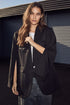 Zwarte blazer van Haute L'Amitié met brede mouwen en twee zakken. De blazer heeft een praktische sluiting met knopen aan de voorkant en een normale pasvorm.