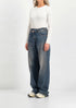 Geweldige jeans met asymmetrische sluiting van Circle of Trust. De jeans heeft een mooie diepblauwe wassing en valt iets ruim. Hij valt lang, maar door je de pijpen omgeslagen te dragen heb je ook een toffe look.