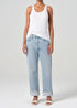 De Fran-jeans van Agolde combineert een retro uitstraling met een losse, rechte pasvorm. De lage taille en comfortabele snit geven een ontspannen vibe, terwijl de onafgewerkte opgerolde zoom voor een speelse afwerking zorgt. Perfect te stylen met een oversized trui of een strak shirt.