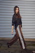 Deze stoere trainingsbroek van Haute L'amitié in een prachtige mocca kleur is de perfecte mix van comfort en stijl. Met brede pijpen en witte strepen langs de zijkanten heeft hij een sportieve en trendy uitstraling. De elastische taille zorgt voor een perfecte pasvorm, terwijl het logo net onder de knie op het rechterbeen een subtiele, maar chique touch toevoegt.