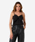 De Tezzy Party Top van Ibana is een echte feestelijke eyecatcher! Deze zwarte top heeft een vrouwelijke hartvormige halslijn, verstelbare spaghettibandjes en een opvallende strik aan de voorkant. De subtiele glans en het flatterende model zorgen voor een elegante uitstraling, perfect voor feestjes of een avondje uit. Dankzij de ritssluiting aan de achterkant trek je de top eenvoudig aan en uit.