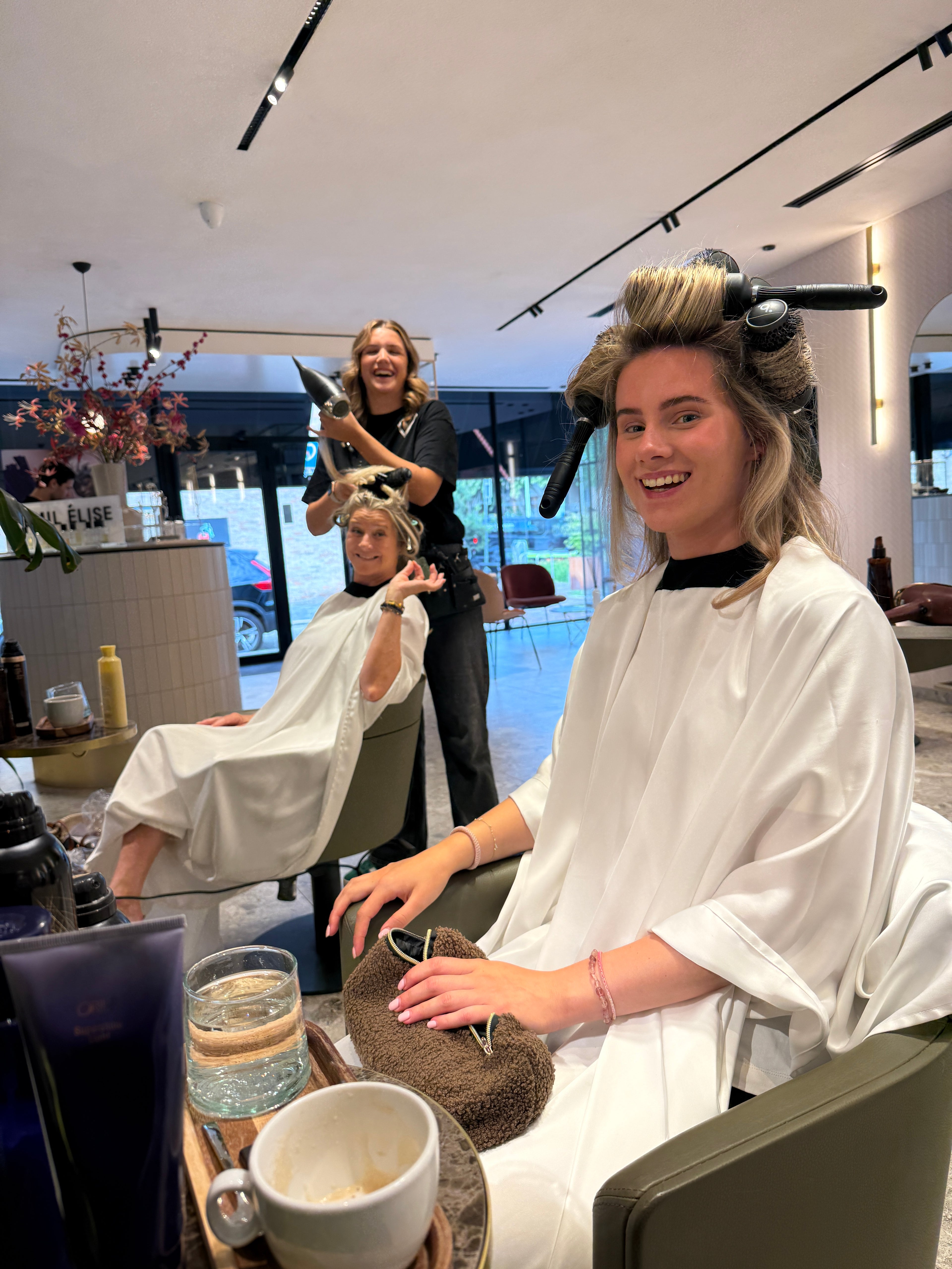 Een shootdag bij butik begint altijd met... ontbijt. Prioriteiten, mensen. En een big blow out bij Bosman — want volume hoort niet alleen in je haar, maar ook in je energie.