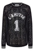 Dit zwarte shirt van Haute L’Amitié combineert vrouwelijke elegantie met een sportieve twist. Het transparante kanten oppervlak geeft een verfijnde touch, terwijl de gestreepte details aan kraag en mouwen zorgen voor een athleisure vibe. Afgewerkt met het witte L’AMITIE-logo en het iconische nummer 1 op de voorkant – een opvallend item dat streetstyle en chic perfect samenbrengt.