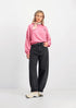 Boxy dames sweater, uitgevoerd in licht roze. De Lexi sweat heeft een loose fit en een zwarte print op de borst.