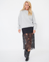 Est'Seven x Ellemieke Vermolen CHPTR 2. Grijze sweater met een oversized fit. Deze sweater is lekker sportief maar kun je ook combineren met de kanten rok uit dezelfde collectie voor een andere look.