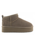 - Platformversie van de suède enkellaars, met een voering van echt schapenvacht.